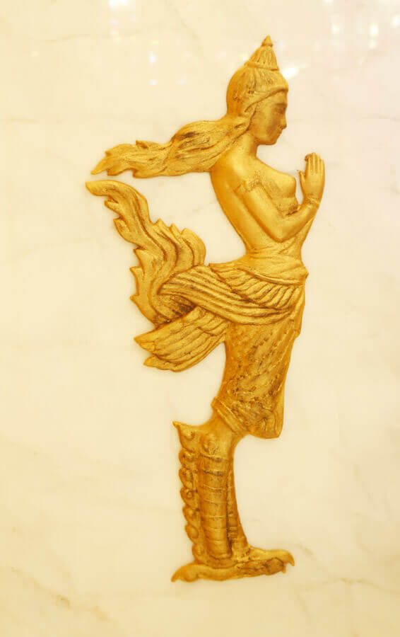 Basin and bathtub in Picasso Black Marble and gold leaf details.